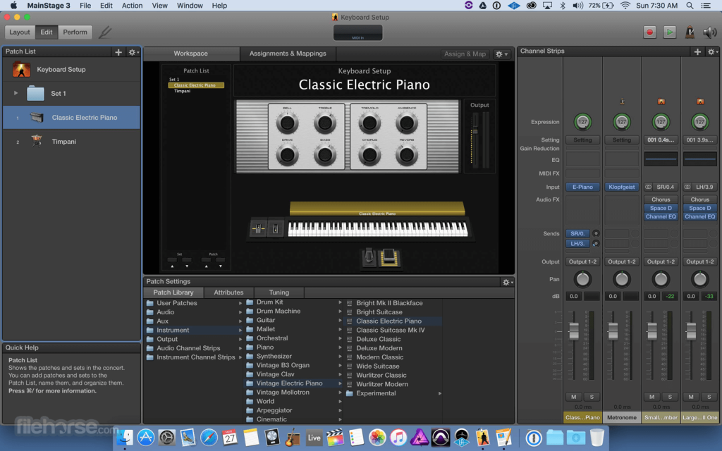 - Multiple Instrument Support: MainStage 3.7.1 supports both software and hardware instruments, including external MIDI devices and audio interfaces, providing a versatile platform for a wide range of setups.